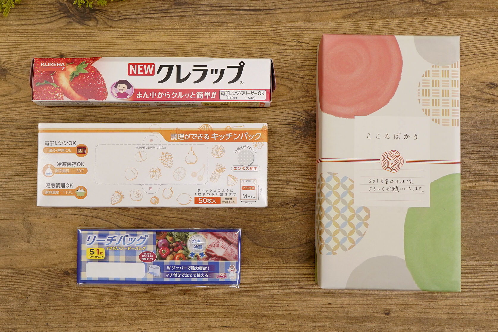 クレラップとキッチンパック、リーチバッグはキッチンで大活躍する消耗品のため、あとに残らず気兼ねなくお渡しできます。